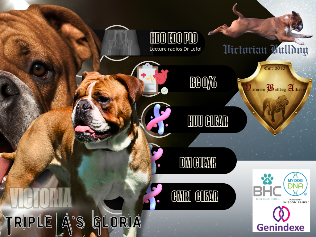 Chaque reproducteur est testé sur le plan sanitaire et observé dans ses aptitudes naturelles, afin de préserver un bulldog capable de respirer correctement, de se déplacer librement et de vieillir dans de bonnes conditions.